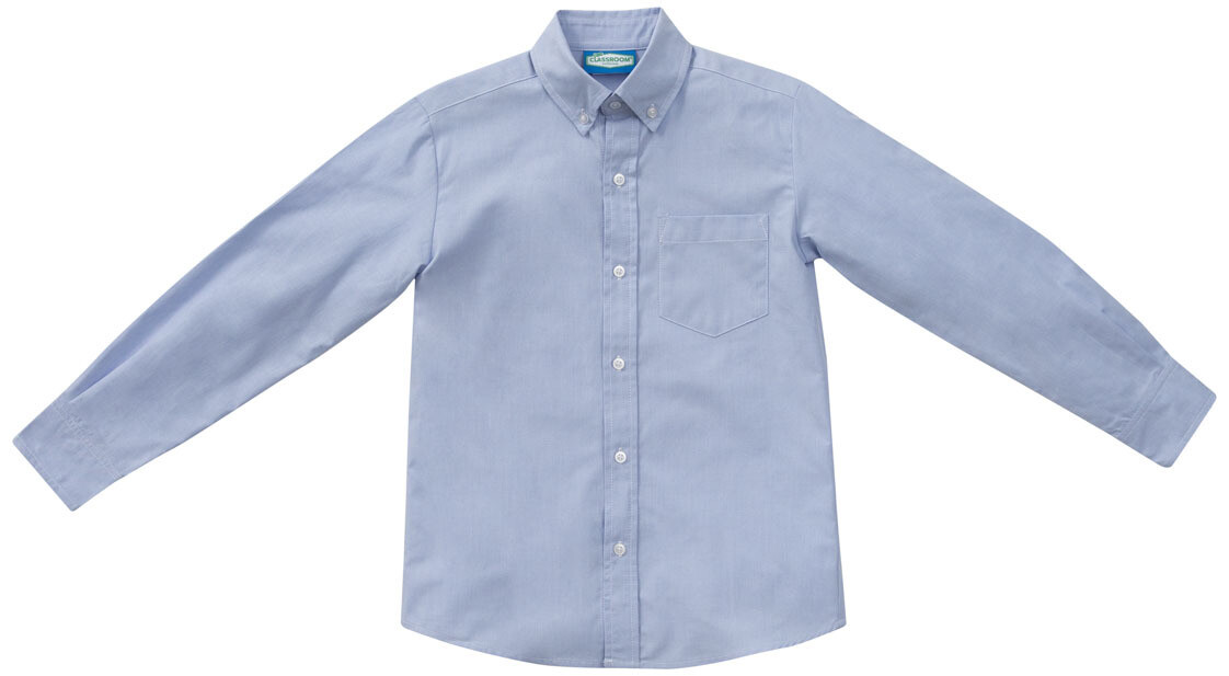 Traditional long-sleeve Oxford with button-down collar, white pearlized buttons, single pocket over left chest, back yoke and shirttail hem. 60% Cotton / 40% Polyester easy care Oxford cloth.